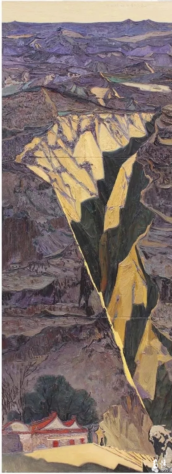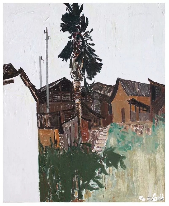 在造型處理上,所畫出的形象要真實可信,有自然原型,但并非照抄照描自然物象。將客觀的自然變成胸中自然,把胸中自然變成畫布上的自然,注意“神遇”、“跡化”的過程。將自然形象轉(zhuǎn)化為具體的繪畫語言,少些物象的概念,多些繪畫語言自身的抽象性元素,同時被轉(zhuǎn)化為繪畫語言的形象又必須有自然物象本身的特點。讓每個形既生動自然又各富特征,表達(dá)出最有意思的東西。盡量讓每個形會說話,物象與物象之間有交流。在具體形象組織上,從局部到整體都要注意畫面關(guān)系的需要,如窯洞的處理,是根據(jù)山樹之間的關(guān)系,將窯洞安排其間,每個窯洞都是具體的,大小、形狀、虛實同樣根據(jù)畫面節(jié)奏而定。以窯洞為主強(qiáng)調(diào)窯洞弱化整個房子的感覺,房子的結(jié)構(gòu)是被肢解后再重新組織的,這點上吸收立體派的一些造型原理,使得畫面具有些現(xiàn)代造型的元素。在用筆造型上,追求形、色、筆觸、肌理相結(jié)合。盡量用寫的方式,注意占色的次序,顏料盡量少的放在調(diào)色板上調(diào)和,盡可能在一筆畫下去讓色彩豐富而且和形結(jié)合,運筆或快或慢,顏色或厚或薄都力求一次完成。