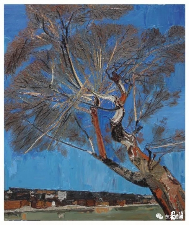 在色彩的處理上運用客觀的色彩和主觀色彩相結(jié)合,注意變化統(tǒng)一原理,并非只是印象派的光色原理。這幾張畫都是在現(xiàn)場寫生創(chuàng)作完成,從早上畫到傍晚,在這種光照逐漸變化的過程中,注意感受每個時間段物象產(chǎn)生的色彩變化。色彩的處理主要根據(jù)畫面主次關(guān)系、色調(diào)和節(jié)奏變化而定。當(dāng)然不是主觀臆造,在注重強(qiáng)化感受的同時一定要注意比較觀察色彩變化的次序和整幅畫面的色調(diào)感。我的體會是特別注意背景(如天空、地面等次要景物)的色彩處理,整個畫面的視覺感受或?qū)Ρ葟?qiáng)烈或含蓄優(yōu)柔,都與背景的處理至關(guān)重要。背景色彩的處理可強(qiáng)化出主體部分,也可減弱主體部分,所以背景的色彩可根據(jù)畫面需要加以主觀處理。