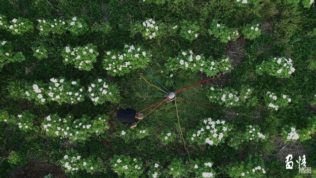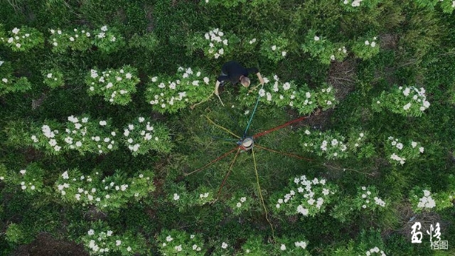 牡丹作為中國(guó)的國(guó)花與一個(gè)石頭的陽(yáng)具一起作為藝術(shù)素材運(yùn)用到作品的表達(dá)中。一個(gè)是有機(jī)的生物,一個(gè)是沒(méi)有生命的冰冷之物;一個(gè)是短暫易逝的被觀賞之物,一個(gè)是恒久的被寄予人抵抗時(shí)間愿望的固體;一個(gè)是鮮活的植物完成遺傳的器官,一個(gè)是象征著人類生殖崇拜的宗教器物物。在這樣的柔軟與堅(jiān)硬,鮮活短暫與冰冷恒久,真實(shí)生命的美麗和活力與文化象征物的強(qiáng)烈對(duì)比和融合中,超越了生死之別,超越了不同事物類別的區(qū)隔。既在藝術(shù)創(chuàng)作中打破媒介之間的屬性隔離,也在人的觀念上突破了非此即彼的封閉性,用一幅畫(huà)面把不同的物質(zhì)和文化元素?zé)o差別的施與魔法,以此喚醒人看待生活的不同觀看視角,審視事物的新的視界,為生命與世界萬(wàn)物,與他人的相互關(guān)系的共存模式構(gòu)建新的社會(huì)情境。