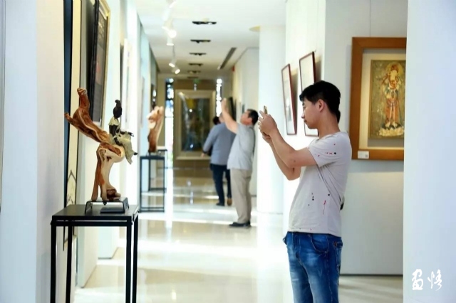 除了參展作品精品云集,此次展覽也吸引了各路知名企業(yè)家親臨現場。默友書院院長續(xù)明偉、七匹狼集團董事長周少雄、廈門市美術家協會主席王新倫等,都參與了開幕式。