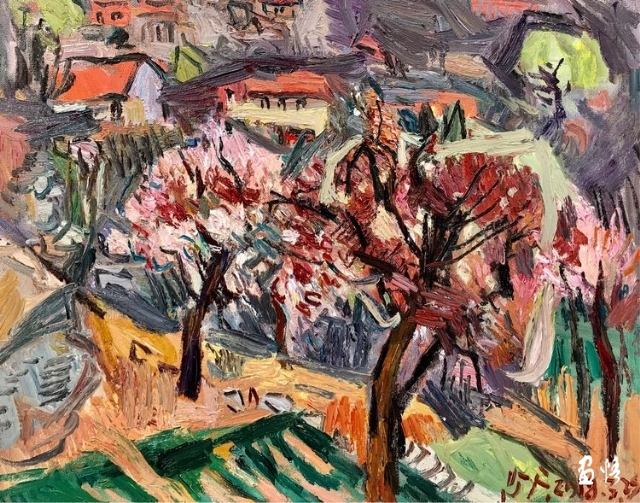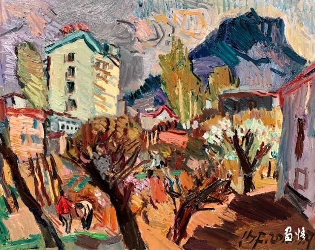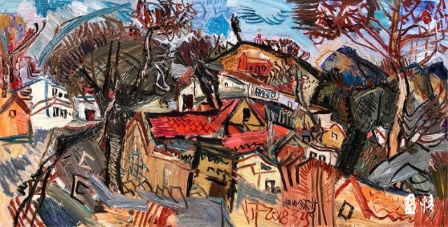 印象派畫的是"有時間 ",古典主義畫的是"沒時間"。印象派是畫落在視網(wǎng)膜上的瞬間,是視網(wǎng)膜藝術(shù),是奮力的快速客觀描摹,來不及珍重蒙馬特街和睡蓮們,印象派要的是不同時間的蒙馬特和睡蓮們。楊繼鋒的快,是為了對眼前的山川屋舍道一聲珍重,是主觀的"內(nèi)在時間",是"中國時間"。