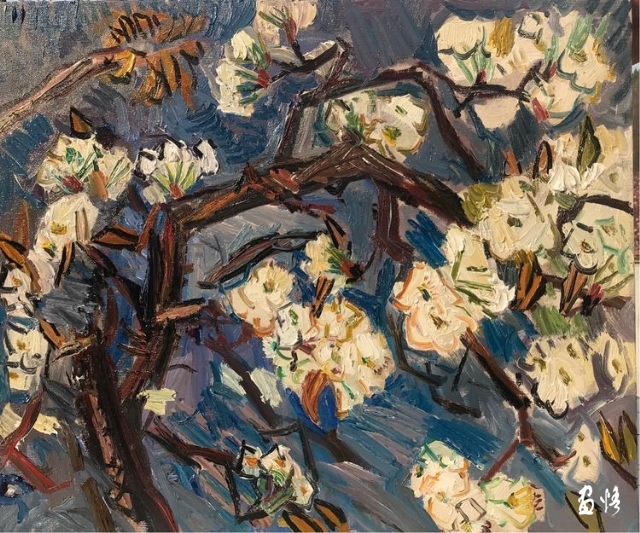 他最喜歡收獲的前夕,六成左右的時節(jié),喜歡即將收獲時隨之而來的可以大搞破壞的好時機(jī)。要親自破壞自己的畫面,親手破壞才能實(shí)現(xiàn)對自己新的考古發(fā)現(xiàn)!大家都把自己的畫面一隴一隴按一個好的莊稼把式的要求耕成模范田,一筆一畫施肥澆水,而且還從構(gòu)圖到筆法密實(shí)四圍,把自己一勺一勺澆到地里的水好好的攏在地里汪著,天上的弦月映在水里,也像是帶著雙下巴的笑,天下太平,突然,他趁我們不備,飛起一腳,踹塌自己田埂的一大坨泥,我們,都想去搶奪他手里的畫筆!剛才的畫面,安全著,好端端的,他卻突然歪七扭八像個惡作劇的孩子極速甩畫上斜道道,擰上圓圈圈,暗自開懷。