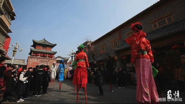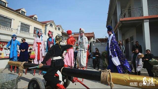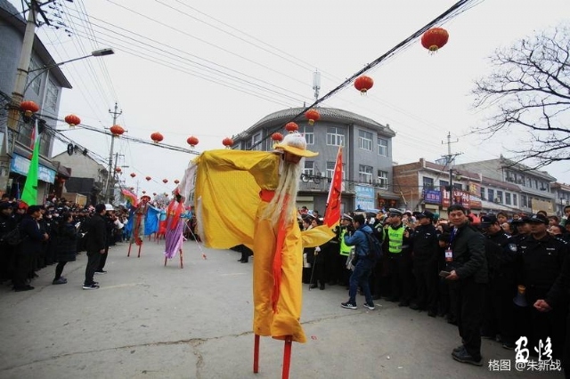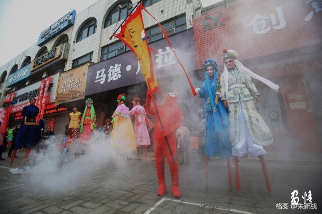 “黎陽社火~尋找孫悟空”混搭在西街村社火隊行列里,高蹺隊里什么角色都有,就是只見“七天大圣”大旗高挑,悟空缺席。西街村社火隊的演員不知道,金箍棒搬運工更是不清楚。整個??h社火似乎都在做一件事,就是尋找孫悟空。