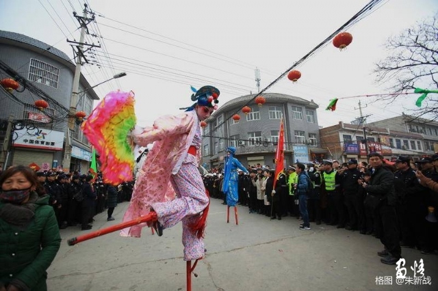 二.從生活具體出發(fā),不是藝術(shù)家作品孤立的介入。中國現(xiàn)實里的偉大當代作品無一例外是政府的行政行為,通常執(zhí)行長官意志荒謬了現(xiàn)實;而藝術(shù)家朱新戰(zhàn)從傳統(tǒng)經(jīng)典出發(fā)、從民間社火入手,以荒謬夸張的社火映射了現(xiàn)實。這一官民意志的顛倒,政治與藝術(shù)的切換順序不同,現(xiàn)實批判的立場凸現(xiàn)出來。
