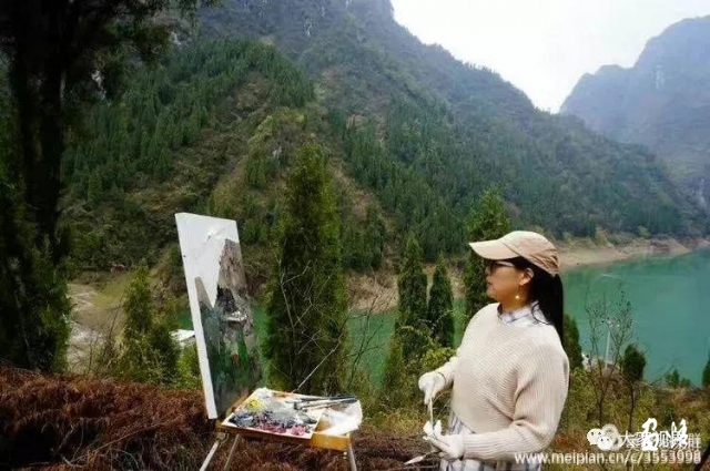 我是第二次來(lái)這里了,喜歡這兒的空氣、喜歡這兒的陽(yáng)光和淡淡的花草味道。有人曾問我“你畫面上的水怎么這么好看,怎么會(huì)是這種顏色”?我告訴她這是仙人溪的溪流,它像一塊碧玉般美麗,我還沒有完全表達(dá)出它的美感。它的美和魅,要比畫面上鮮活生動(dòng)的多。