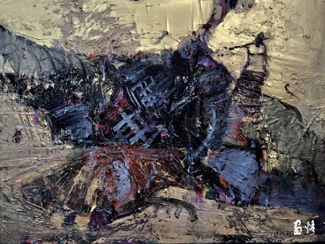 一幅畫的好壞也取決于作者心靈的走向。我把現(xiàn)場的沖動作為第一手材料烙在畫布上,回來后有的涂改了無數(shù)遍依然未能達(dá)到理想,這是一場痛苦的革命,幾乎把“他”摔碎又重新讓他活過來,最后往往是“遍體鱗傷”。即便如此,我依然樂此不疲,獨行在朝圣的路上。