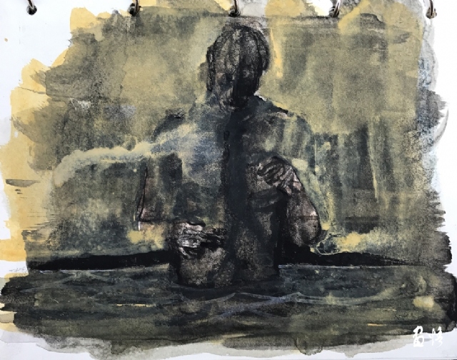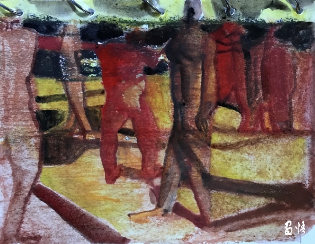 陳明華《慢步》 紙本水彩21x29cm 2018