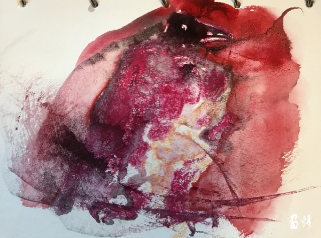 陳明華《紅云》 紙本水彩21x29cm 2018