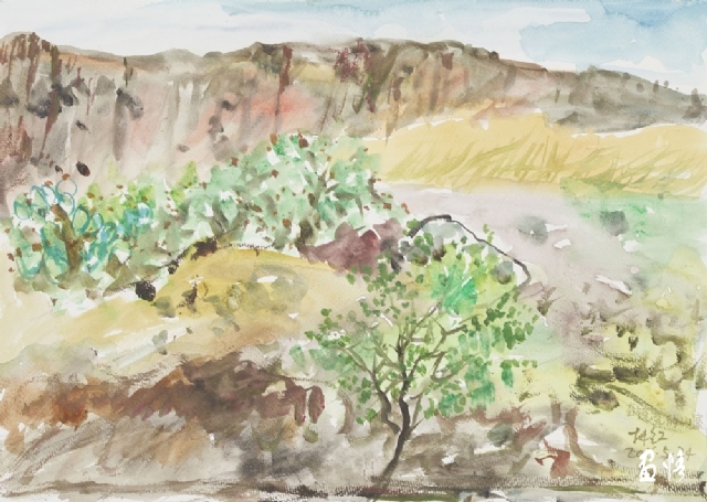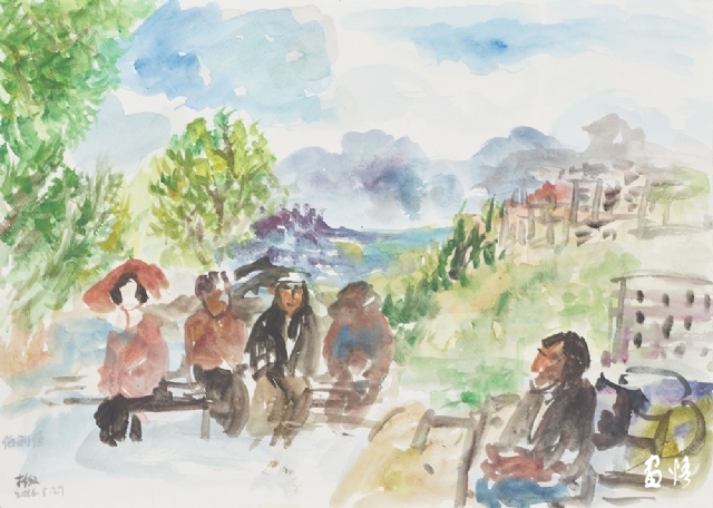 奮銳黨的山寨37.5X26.5cm水彩畫