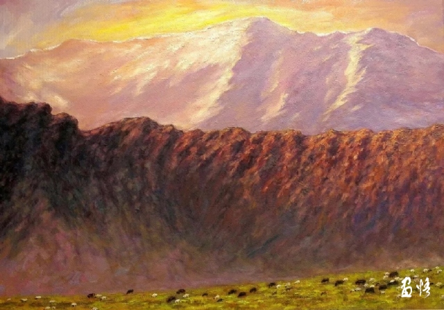 林文德多次奔波于昆侖之源的帕米爾高原,著手寫生創(chuàng)作“望昆侖”系列油畫作品,歷時(shí)三年有余,耗費(fèi)一千多個(gè)日日夜夜,完成作品逾八十幅。林文德筆下傾注心力描繪的昆侖山源頭南疆喀什、到塔斯庫(kù)爾干、紅其拉甫一帶,恰是古代絲綢之路的必經(jīng)通道,也是處于當(dāng)下“一帶一路”國(guó)家倡議規(guī)劃的中巴鐵路沿線上,屬于典型的一帶一路繪畫藝術(shù)作品。