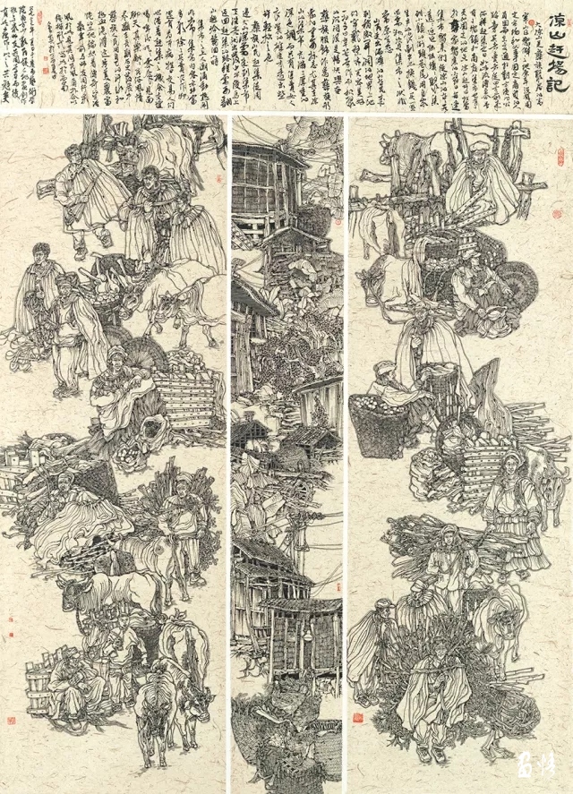 此次展覽立足于豐厚的“入蜀”文化背景,邀請(qǐng)全國(guó)藝術(shù)家來(lái)表現(xiàn)蜀地的大美山水、風(fēng)土人情,展現(xiàn)改革開(kāi)放四十年來(lái)祖國(guó)發(fā)生的翻天覆地變化?!叭胧穹街?huà)意濃——全國(guó)美術(shù)作品展(中國(guó)畫(huà))”由中國(guó)美術(shù)家協(xié)會(huì)、四川省文學(xué)藝術(shù)界聯(lián)合會(huì)主辦,中國(guó)文聯(lián)美術(shù)藝術(shù)中心、四川省美術(shù)家協(xié)會(huì)、四川美術(shù)館承辦。此次展覽是中國(guó)美協(xié)在四川主辦的投稿人數(shù)最多、規(guī)模最大、發(fā)動(dòng)面最廣的一次大型藝術(shù)展事,深受社會(huì)各界關(guān)注。自征稿以來(lái),展覽受到全國(guó)藝術(shù)家的熱烈響應(yīng),最初收到了4259件投稿作品,經(jīng)過(guò)認(rèn)真嚴(yán)格的初評(píng)和復(fù)評(píng),最終評(píng)選出入選作品231件,呈現(xiàn)給觀眾。展覽作品題材多樣,風(fēng)格各異,其中有已在畫(huà)壇饒有名氣的實(shí)力中堅(jiān),也涌現(xiàn)出了大批優(yōu)秀的新人新作。他們有的在繼承傳統(tǒng)的基礎(chǔ)上銳意創(chuàng)新,有的受現(xiàn)代思潮影響在形式構(gòu)成上大膽突破,不論是濃郁的文人古典情懷,還是深切的現(xiàn)實(shí)主義關(guān)照,藝術(shù)家們都用手中的畫(huà)筆,把握著時(shí)代脈搏,以堅(jiān)定的文化自信,講述四川故事,展現(xiàn)秀美四川,彰顯中國(guó)氣派!現(xiàn)將這些作品匯編成集,希望帶給大家美的享受和深層的文化思考。