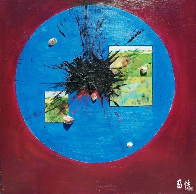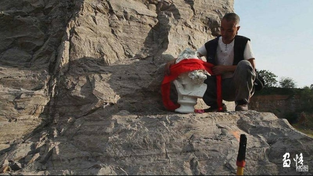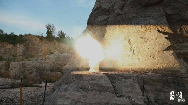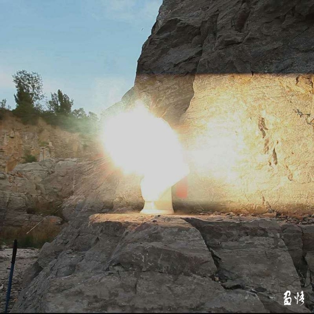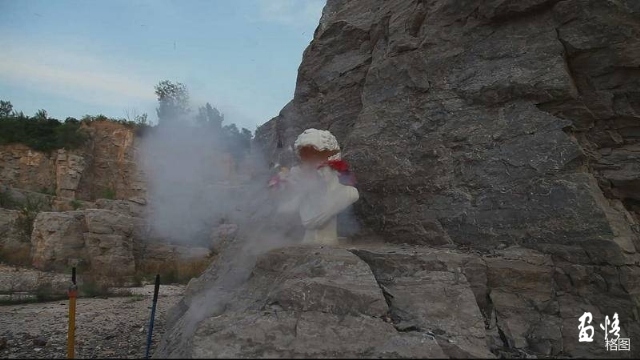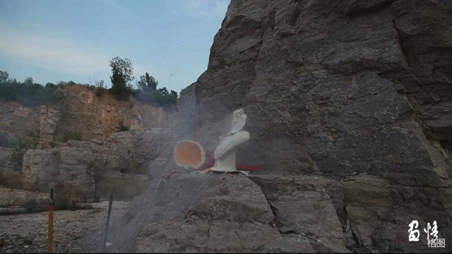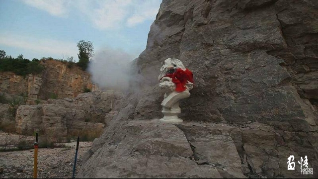 最近朱新戰(zhàn)又亢奮起來,四處尋找爆竹存貨(政府明令禁止煙花爆竹交易),滿腦子捕捉毀滅物象?!氨ā睂憣嵉膰臁⒖p綁石塊的畫作、有基弗爾作品面貌的巖壁,石膏像也被搬了出來。因為種種問題困擾不得不暫時放棄大場面、大制作的藝術(shù)行動,他開始架上裝置作品的工作。爆炸的不可控造型吸引了他,于是作品再度將他置于曠野。