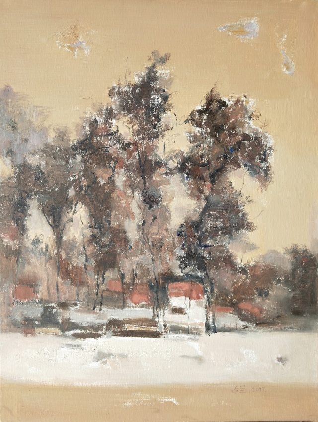 《右玉初雪》60X80cm 布面油畫(huà) 2009年