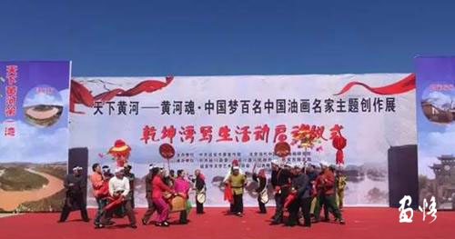 黃河岸邊天空湛藍,映襯著逶迤闊遠(yuǎn)的黃土高原;乾坤灣泮披紅掛綠、鑼鼓喧天,爆竹聲聲,腰鼓隊、秧歌隊、陜北道情和激昂催人的嗩吶吹奏等陜北民間藝術(shù)活動,與圍觀的人群組成了一個盛大的歡迎場面。中午11點30分啟動儀式開始。啟動儀式由延川縣副縣長白小平主持,中共延川縣委常委、宣傳部長黨曉明致歡迎詞,延安市文聯(lián)黨組書記石興平發(fā)表致辭,中央美術(shù)學(xué)院藝術(shù)管理與教育學(xué)院院長、中國美協(xié)美術(shù)教育委員會副主任、博士生導(dǎo)師余丁教授宣讀了中央美術(shù)學(xué)院范迪安院長激情昂揚的致辭,北京當(dāng)代中國寫意油畫研究院常務(wù)副院長王輝代表主辦方與藝術(shù)家們講話。最后,北京當(dāng)代中國寫意油畫研究院副院長丶學(xué)術(shù)委員會副主任、中央美術(shù)學(xué)院教授、博士生導(dǎo)師丁一林教授宣布活動正式啟動。