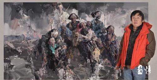 重主觀,賦予真性表達(dá)的灑脫。延昭創(chuàng)作的主觀性不是主觀主義,也不是膽大妄為、生搬硬套的臆念,更不是東拉西扯、胡謅亂編的妄為,而是厚積簿發(fā)、靈氣悟性的真情抒寫(xiě),是建立在客觀事實(shí)基礎(chǔ)上、符合事物規(guī)律的獨(dú)到主觀藝術(shù)建構(gòu),也是現(xiàn)實(shí)之外、情理之中的率真新穎的藝術(shù)表達(dá)。他真性灑脫“寫(xiě)實(shí)意象派”的油畫(huà)風(fēng)格,實(shí)現(xiàn)了人物畫(huà)客觀存在的現(xiàn)實(shí)感與寫(xiě)意抒情的主觀性有機(jī)融合,形成交匯融合、渾然天成的藝術(shù)統(tǒng)一。這種獨(dú)具特色的藝術(shù)功力,源于他30多年苦心孤詣的探索和極佳的藝術(shù)天賦。事實(shí)上,早期他畫(huà)油畫(huà)也沒(méi)能脫俗,曾是“畫(huà)照片”式的“寫(xiě)真”或模仿,對(duì)繪畫(huà)對(duì)象進(jìn)行簡(jiǎn)單描摹……傳承和創(chuàng)新中國(guó)畫(huà)精神的強(qiáng)烈使命責(zé)任,將他逼到墻角跳出“老框框”,對(duì)自身油畫(huà)表達(dá)方式進(jìn)行徹底性顛覆,數(shù)以千萬(wàn)遍按照中國(guó)寫(xiě)意繪畫(huà)的肌理特點(diǎn),用油畫(huà)色彩對(duì)場(chǎng)景、環(huán)境、結(jié)構(gòu)進(jìn)行藝術(shù)化概括提煉,特別是用油墨濃澀枯淡、皺褶筆觸等細(xì)節(jié),將自己的藝術(shù)感受、心靈體驗(yàn)得到盡情抒發(fā)與傾瀉,使油畫(huà)彰顯出中國(guó)寫(xiě)意精神的美感與魅力。在色彩運(yùn)用上,他以扎實(shí)的傳統(tǒng)素描為基石,著力追求自主性和擴(kuò)張性,甚至像莫奈一樣,埋頭數(shù)十年,對(duì)著一個(gè)景物的不同光線(xiàn)畫(huà)出系列寫(xiě)生,積累豐富的色彩經(jīng)驗(yàn)。他還吸收版畫(huà)、木刻、雕塑等藝術(shù)元素,用油畫(huà)顏色進(jìn)行多色造型、構(gòu)成顏色塊面,以明暗、冷暖、陰陽(yáng)等營(yíng)造豐富多樣、新穎變幻的色塊,形成富有力量感的藝術(shù)效果。如《血浴羊山》中淺紅色、淡紅色、褐紅色的運(yùn)用,體現(xiàn)出昂揚(yáng)的節(jié)奏和韻律,既有一種感官上的自由情緒,也蘊(yùn)含著現(xiàn)實(shí)感的表現(xiàn)力,給人耳目一新、暢快淋漓的藝術(shù)審美享受。