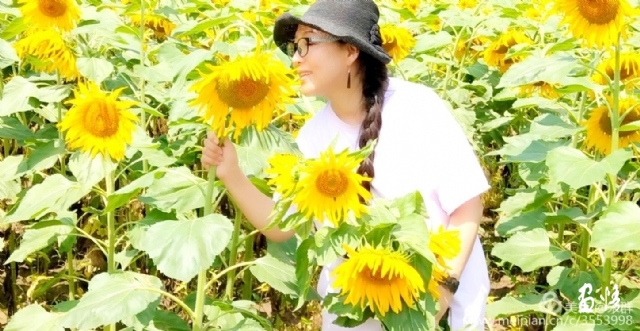 明艷的黃,由遠(yuǎn)而近地奔了過來,它讓我有了心旌搖曳的怦然。這是一大片鑲嵌在無邊的綠波之中閃耀著太陽的光輝的葵園。