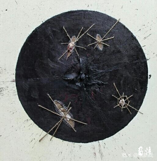 朱新戰(zhàn)的2017年做了幾十件力作,頭發(fā)一點(diǎn)點(diǎn)白盡,膚色漸漸黑,思考讓他加速消耗生命能量。他沒(méi)頌?zāi)罱?jīng)咒,也未篤信基督,他只想擔(dān)當(dāng),告訴世人追求藝術(shù)是偉大的超越!