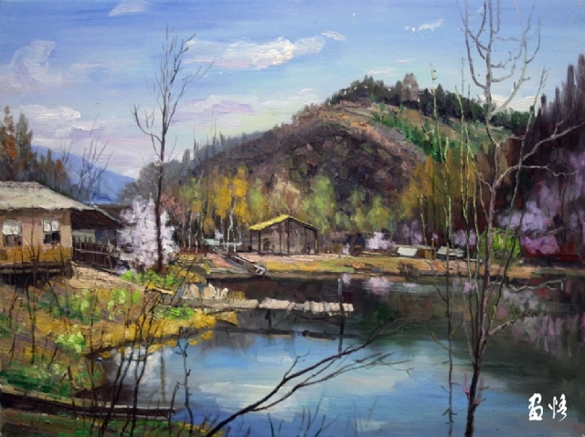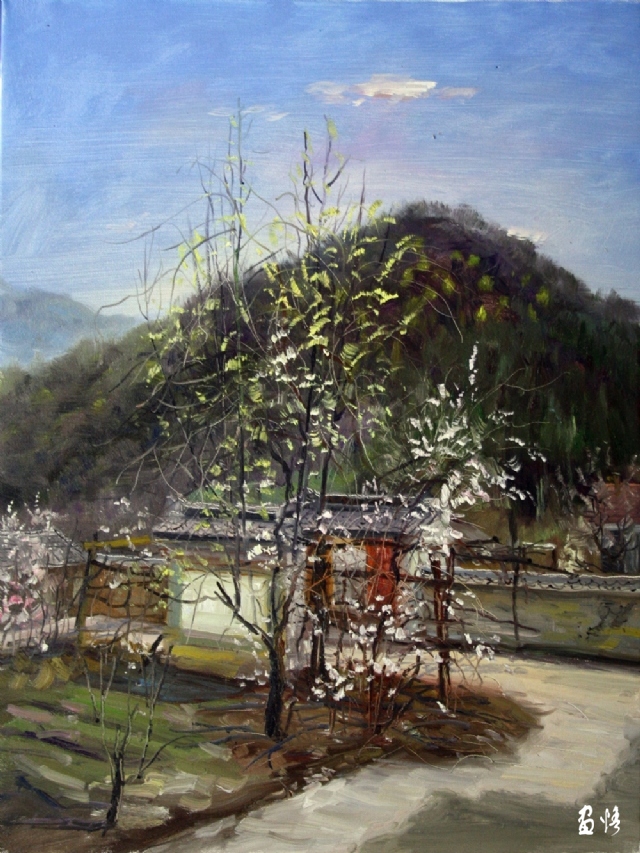 《農(nóng)舍春意》布面油畫.作者;石廣武.尺寸;80X60(CM)