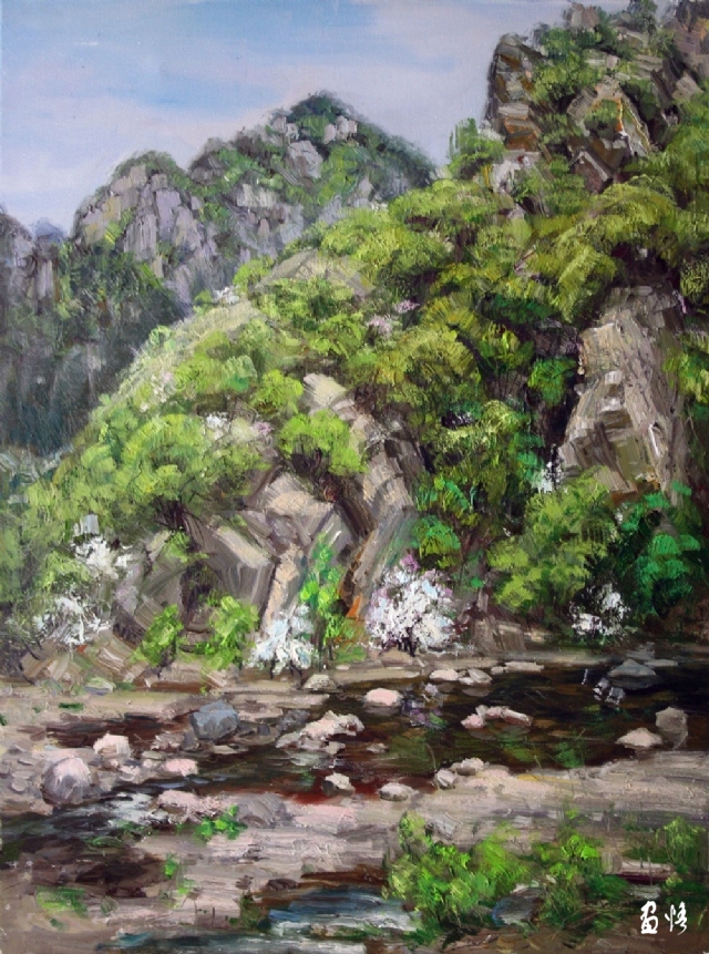 《春曉》布面油畫.作者;石廣武.尺寸;50X60(CM)