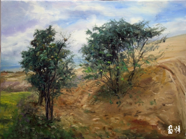 《沙柳》布面油畫.作者;石廣武.尺寸;80X60(CM)