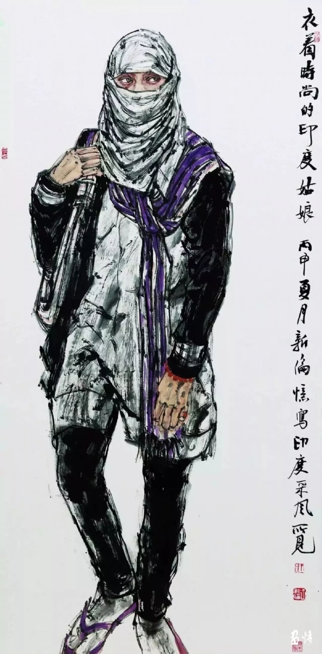 《衣著時(shí)尚的印度姑娘》136x68cm 2016