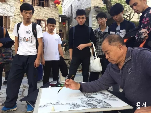 此次寫生,?;菝裰饕x擇了三個有代表性的地點:革命老區(qū)閩西上杭、長汀、千戶瑤寨油嶺村、黃姚古鎮(zhèn)。