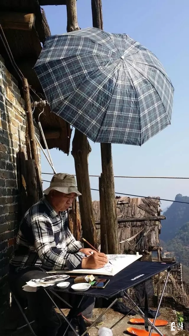“我在此寨寫生十天,寫生期間,由于山寨處于原生狀態(tài),沒有吃住條件,我只能住在縣城,每天往返于瑤寨與縣城之間,開車都要40多公里,午餐只有用泡面解決?!迸;菝裾f,但可喜的是,他在此完成寫生作品15幅,且多是本次寫生的精品。