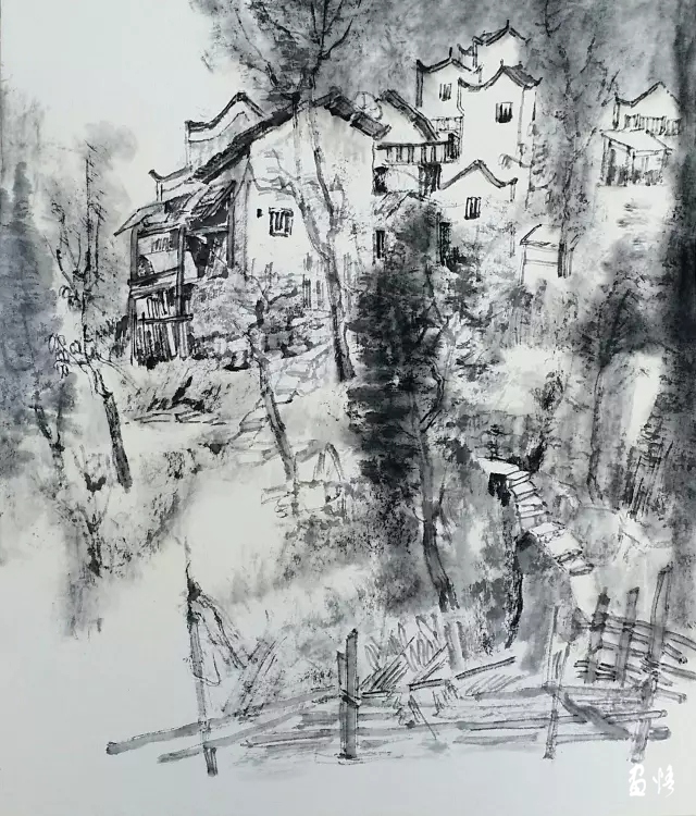 在黃姚寫生一周時間里,他完成了寫生作品10余幅。
