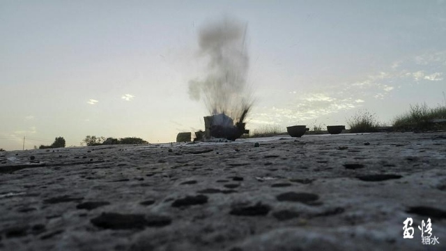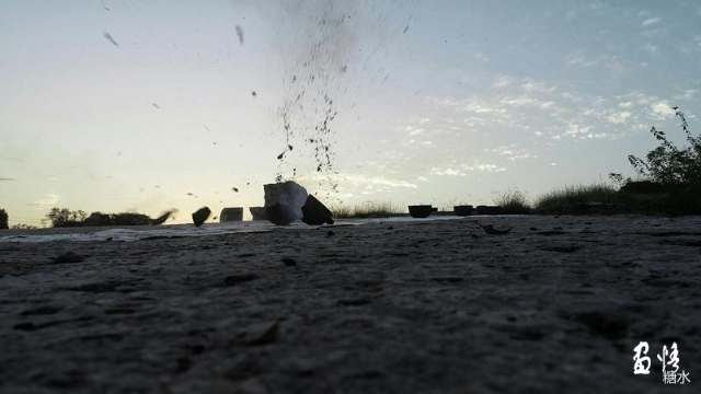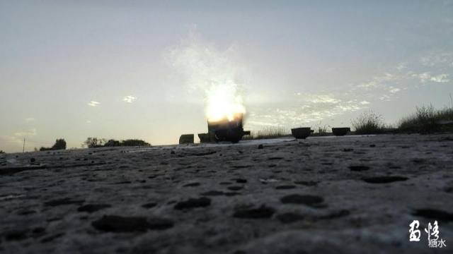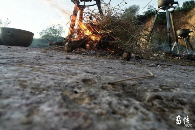 頭上頂鍋的朱新戰(zhàn)是有點頑命的意思,我知道那加大藥量的爆竹曾炸毀過他的一口大鐵鍋。為此做了耳塞、墊子、棒球帽的防護,大家都想看把鍋炸藍(lán)的效果,哪管藝術(shù)家的死活,點了火就跑!四紙杯各種藍(lán)色,一砂鍋藍(lán),這些天鬼門關(guān)大開,萊因克爾看了眼睛藍(lán)了,也就瞑目了。
