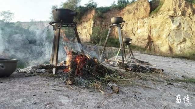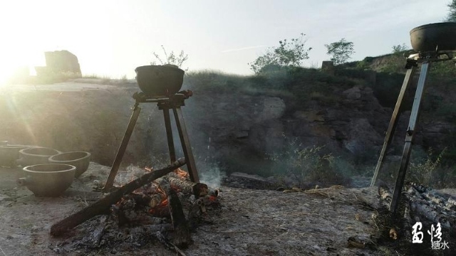 這樣,藝術(shù)家取得了四件作品和一堆碎片及一口藍(lán)鍋,一個現(xiàn)場的作品出來了。