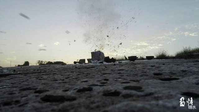 藝術(shù)家朱新戰(zhàn)“炸畫”現(xiàn)場很有趣,參與性很強,很多畫家、行為藝術(shù)家都想來上一炮。我在窗外固定機位拍攝,每一次爆炸之后和邊上的相機一樣~灰頭土臉!所幸,每次精彩各異的爆炸抓拍到了,應(yīng)該是爆炸聲嚇得手指一緊,剛好拍到了。