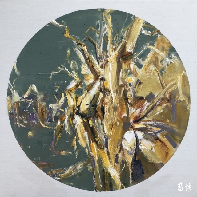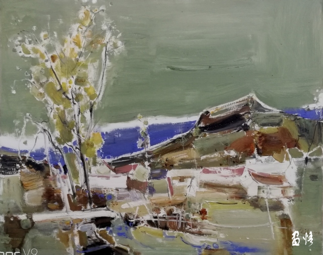 劉長清的作品給人一種云霧飄渺、氣韻生動(dòng)的感覺,從中可解讀出先生創(chuàng)作時(shí)的心境與中國繪畫的寫意精神密不可分。畫面中既有中國畫的意境,又兼顧了油畫的高雅色調(diào),使整幅作品雅致、深邃、含蓄而不失生動(dòng)。在構(gòu)圖方面以局部見整體,留出大片的空白,給人以空靜、爽朗的意境之美。色彩方面,拋開物體固有的色彩,通過主觀的再塑造表達(dá)自己對(duì)風(fēng)景、物景的理解和審美情趣的抒發(fā)。在這個(gè)過程中畫家對(duì)色彩進(jìn)行了夸張、提煉、概括,從而達(dá)到傳神、抒情、寫意的效果。色彩的冷暖對(duì)比、明暗變化、色調(diào)氛圍及用筆的輕重緩急無不體現(xiàn)出畫家的內(nèi)在精神和情感世界。