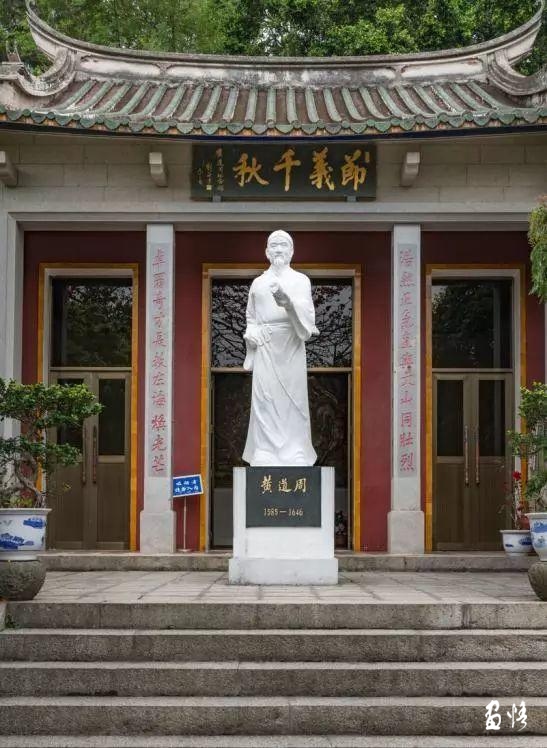 在明亡后的南明時(shí)期,黃道周曾被南京弘光小朝廷委為禮部尚書兼翰林學(xué)士協(xié)理少詹府事,旋即失望而去。之后,又于1645年閏六月,與鄭芝龍擁立唐王朱聿鍵在福州稱帝,史稱隆武朝,出任“少保吏部尚書武英殿大學(xué)士”,也就是內(nèi)閣首輔。為恢復(fù)明朝的江山,黃道周以一介文弱書生,自請帶兵北上抗清。5個(gè)月后,他在江西兵敗被俘。他的對手其實(shí)不是滿清軍隊(duì),而是他曾經(jīng)的同僚、老鄉(xiāng),南安人洪承疇的部下。洪承疇當(dāng)初松山兵敗被清人所執(zhí),開明朝重臣降清之先河,為清人打天下,時(shí)任清朝江南總督,駐南京。洪承疇以各種手段,力勸黃道周降清,但他拒絕投降,不但拒絕,還以各種方式痛斥洪承疇的變節(jié)行為。黃道周在獄中寫下“蹈仁不死,履險(xiǎn)若夷。有隕自天,舍命不渝?!北憩F(xiàn)出視死如歸,舍身成仁的高尚情操。3個(gè)月后,在南京慷慨就義。