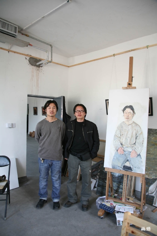 在列維坦名作《湖》前與畫家王輝等人合影