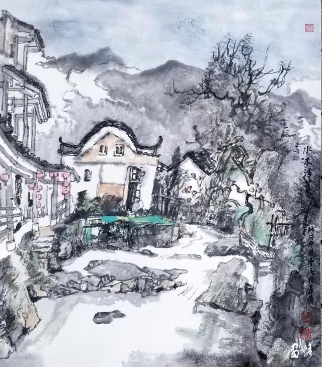 同時(shí)在寫生的筆墨經(jīng)營(yíng)中,必然融入畫家自我的體驗(yàn)和感受。?;菝衩看螌懮貋砜偸钦J(rèn)真地對(duì)寫生作品加于整理,完善。其中不乏臨場(chǎng)即興的好作品,同時(shí)也為今后的創(chuàng)作積累了許許多多富有自我感知體溫的好素材。?;菝駥?duì)山水畫的創(chuàng)作始終有他自己清晰的思路,秉承著輕松明快、自由逸宕的風(fēng)格取向,追求如詩(shī)如夢(mèng)的畫面意境。他努力實(shí)踐石濤“搜盡奇峰打草稿”的至理名言,熱愛生活,深入生活,有著走南闖北的豐富閱歷,不斷拓展著作品的內(nèi)涵,南北兼融,亦潤(rùn)亦蒼。