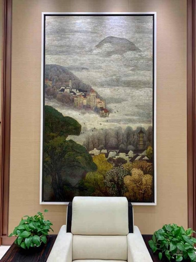 整幅畫面陰陽和諧,靜中有動,動中有靜。氣宇軒昂,恢弘大氣。山和水;樹和風(fēng);建筑物和云霞霧靄,動靜相宜,相得益彰;陰平陽秘,一陰一陽,隱喻中華民族的生生不息。 即“天地氤氳,萬物化醇”。
