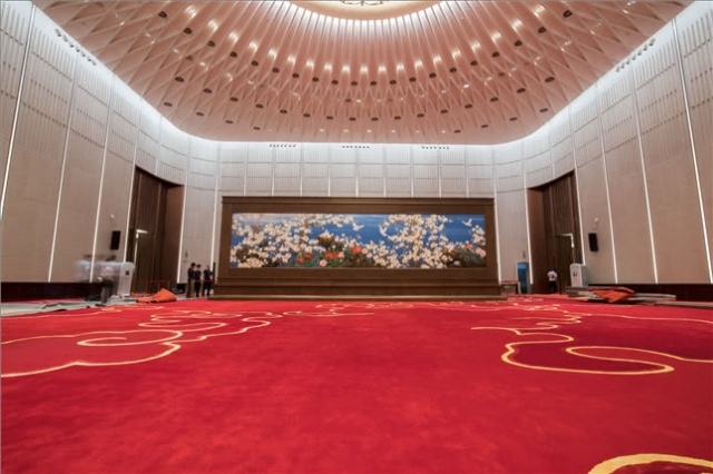 而中華文化的流通全靠?jī)蓷l大動(dòng)脈……文化的任脈與督脈。中華文化的任脈就是“可言傳”的經(jīng)史子集;中華文化的督脈就是“可意會(huì)”的藝術(shù)。從他們的力作中,來(lái)參加“進(jìn)博會(huì)”的四海賓朋,就能領(lǐng)略到中華文化的悠久與魅力。這些大師,有的是該畫(huà)種的非遺傳承人;有的是該畫(huà)種的領(lǐng)軍人物。而“進(jìn)博會(huì)”迎賓大廳這四幅國(guó)粹巨作,既有代表中國(guó)文人精神的國(guó)畫(huà);又有代表中國(guó)工匠精神的工藝美術(shù)……木雕,蘇繡;又有從工藝美術(shù)中脫穎而出,如今也成為中國(guó)美術(shù)新畫(huà)種,融合了中國(guó)文人精神與工匠精神的中國(guó)漆畫(huà)。