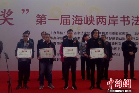 2018年12月28日上午,“黃道周獎”第一屆海峽兩岸書法作品展在漳州市美術(shù)館(新館)開幕。漳州市委常委、宣傳部長劉偉澤,市人大常委會副主任李珊珊,市政府副市長蘭萬安,市政協(xié)副主席何偉燕出席開幕式,并為此次展覽作品獲獎書法家代表頒獎。