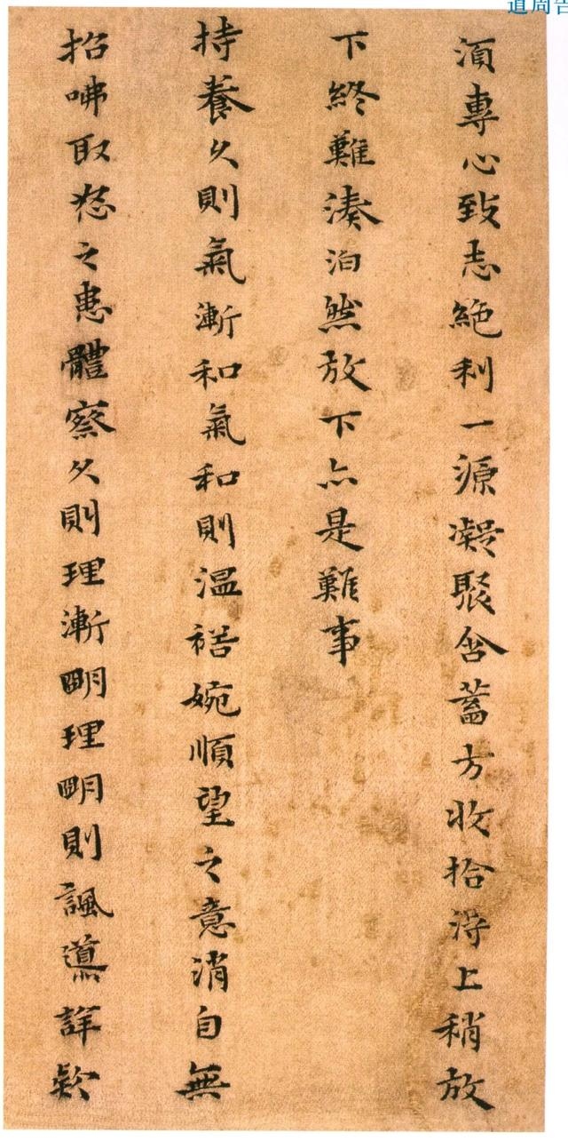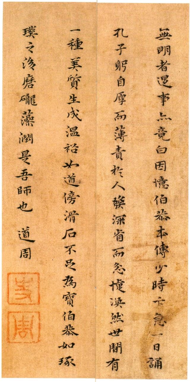 黃道周善楷、行、草諸體書(shū),又工隸書(shū)。他的楷書(shū),如《孝經(jīng)卷》、《張溥墓志銘》,字體方整近扁,筆法健勁,風(fēng)格古拙質(zhì)樸,十分類(lèi)似鐘繇楷法。不同處是,鐘書(shū)于古拙中顯得渾厚,黃書(shū)則見(jiàn)清健,可以看到其受王羲之楷法的影響。