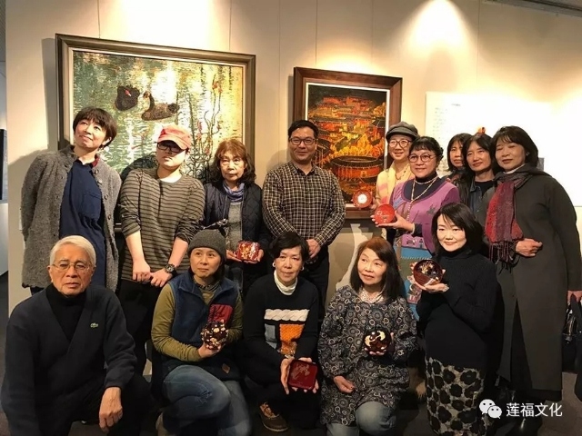昨天下午活動現(xiàn)場觀眾氣氛熱情高漲,參加漆畫體驗(yàn)作者年齡段從十幾歲至七、八十歲愛好者,年齡跨度近六十年,每人非常認(rèn)真完成一幅心中所喜愛的圖像繪制,風(fēng)格多樣。繪制題材與形式顯示中日兩國文化的特點(diǎn),通過中國漆藝朮文化的體驗(yàn)課程,讓觀眾體驗(yàn)漆畫繪制讓他們表達(dá)出自己的心情同時還能夠提高自己對生活想象力和表達(dá)能力。能夠讓他們體會到友好生活的美好與快樂?!巴瓿梢环嫼笞约簳浅S谐删透?,我還簽上自己的名字A.l”八十歲老男生如小孩般神情讓人感動,也有東京藝術(shù)大學(xué)其它專業(yè)在校學(xué)生說:“看完這次漆畫精品展,對漆畫表現(xiàn)效果與材料質(zhì)感非常驚奇。特別感謝周教授傳授漆畫制作辛苦”。還有井岡今日子漆友說利用閑暇時間圓自己童年繪畫夢想。最后全部漆畫體驗(yàn)作者展示自己親手完成小作品與周榕清教授合影留念。今天在日中友好美術(shù)館和蓮福美術(shù)館攜手舉辦漆畫精品展覽與漆畫體驗(yàn)又一見證中日友誼長存。
