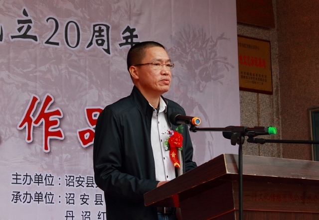"指墨藝術(shù)"為中國(guó)書(shū)畫(huà)一種技法,有指書(shū)與指畫(huà)之稱。其創(chuàng)作方式即書(shū)畫(huà)家不假毛筆等工具,直接用指頭、指甲和手掌蘸墨或顏色在紙、絹上作書(shū)畫(huà)。自清初高其佩獨(dú)創(chuàng)指頭畫(huà)以來(lái),承其衣缽者眾多,并不斷完善豐富,遂形成這一獨(dú)特流派。至清代以來(lái),善作指墨者不勝枚舉,如甘士調(diào)、潘天壽、梁崎、王之海、虞小風(fēng)等,僅詔邑而言,有沈?qū)毶啤⑸颥幊?、謝琯樵等,風(fēng)格各異。詔安縣處閩粵之交,地靈人杰,文風(fēng)熾盛,書(shū)畫(huà)藝術(shù)源遠(yuǎn)流長(zhǎng),是文化部命名的"書(shū)畫(huà)藝術(shù)之鄉(xiāng)"。盛世興文。1996年夏,在許崇五、沈榮添、陳振春、沈克川、陳谷沛等老一輩書(shū)畫(huà)家的辛勤耕耘下,"詔安指墨研究會(huì)"應(yīng)運(yùn)而生。研究會(huì)成立以來(lái),秉承指墨藝術(shù)源流和風(fēng)格,不斷嘗試創(chuàng)新與發(fā)展。組織會(huì)員創(chuàng)作作品,多次成功舉辦指墨作品展,得到社會(huì)藝術(shù)界和大眾的關(guān)注與贊賞。不忘初心,砥礪前行。我們深信,指墨藝術(shù)之花在海西建設(shè)這片沃土上會(huì)綻放得更加絢麗。
