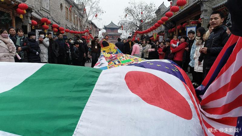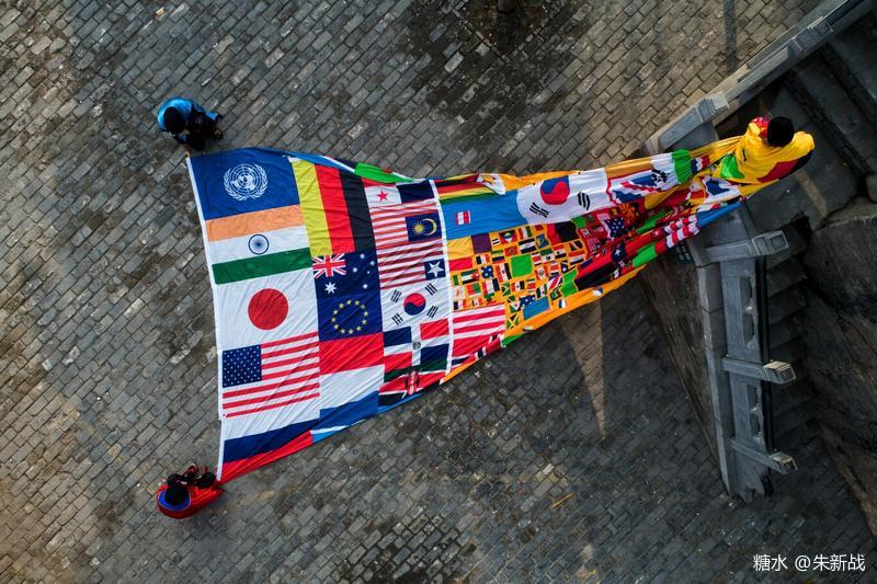 把這個世界上除了咱中華人民共和國的國旗之外的其他很多國家的國旗剪開,破壞,再用這些碎片拼湊成一面暫且叫“萬國旗”的新玩意來,不知道這個作為禮物送給聯(lián)合國,會不會作為聯(lián)合國旗被升起在聯(lián)合國大廈前面?并不是朱新戰(zhàn)不想把中國國旗納入他的行為作品中去,而是咱的國旗有神功護體,朱新戰(zhàn)的功力不夠,對它下不了手,實在只能望旗興嘆也!