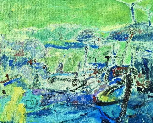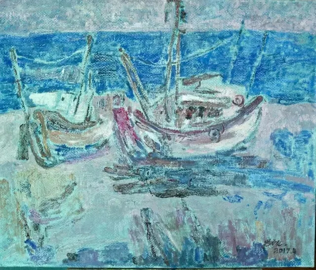 其作品已不是簡單的記錄,而是把內(nèi)心思考暴露在自然面前,剎那間的情緒與眼前色彩之間,有無共鳴的節(jié)奏,眼前漁船的結(jié)構(gòu)與內(nèi)心思考構(gòu)架之間,是否打通神秘的通道。
