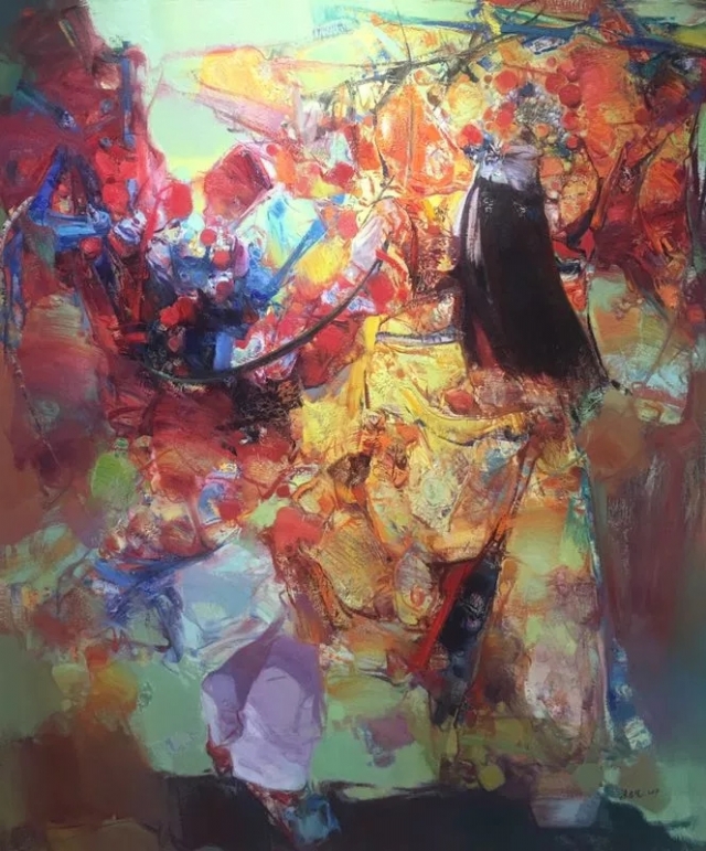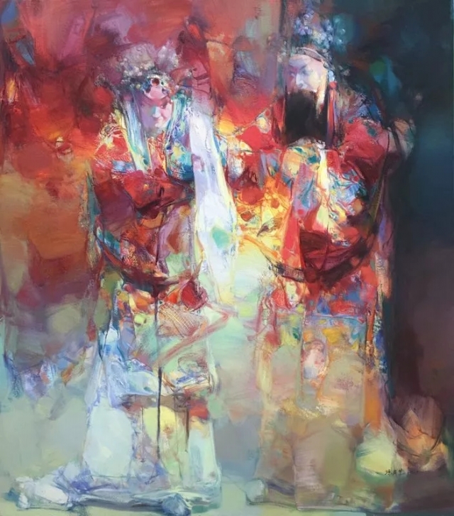 啟先自小酷愛藝術(shù),鄉(xiāng)村的淳美留給他創(chuàng)作的素材,生活的積累豐富并點(diǎn)燃他創(chuàng)作的激情。啟先前些年畫家鄉(xiāng)的美景“土樓”,社會、經(jīng)濟(jì)效益都很好,本可繼續(xù)畫下去,可他戛然而止,去追尋他更高的目標(biāo)和方向。這兩年他追尋中華傳統(tǒng)國粹,畫了一系列“戲劇人物”,很有膽魄,他將國粹經(jīng)典化為手中油彩的精、氣、神、用心靈深處的藝術(shù)感悟變了戲法,將國粹變成了一幅幅藝術(shù)精品。他的創(chuàng)作手法很具表現(xiàn)性,構(gòu)圖簡潔,用色大膽,形色交融,充滿活力,東方意韻,令人著迷??此淖髌纺苁鼓阍诜彪s的生活中靜下心來細(xì)細(xì)品味,讓你移心入畫,禪悟心境,戲如人生,人生精彩。