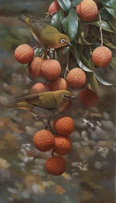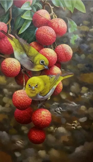 ▽ 張志良的繪畫手法柔和細(xì)膩,光感透澈清晰;刻畫的物景細(xì)致生動,頗具本真實(shí)藝術(shù)效果。他的畫作內(nèi)容多以罕見植被花鳥、野生動物為主,他說這跟他自小的生活環(huán)境息息相關(guān)?!拔倚〉臅r(shí)候可以經(jīng)常接觸到這些植被野果,也很喜歡畫畫。兩者就這么自然而然成了?!睆堉玖际俏淮緲阏鎸?shí)的畫家,沒有過多張揚(yáng)和高遠(yuǎn)的理想。他沉靜于現(xiàn)狀,享受并還原著大自然賦予的生命給予的力量和美感,用自己的繪畫語言、樸實(shí)的藝術(shù)氣息繪畫了一張張平和靈動的畫面。