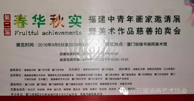 2016年9月10日下午3:00,由福建省油畫(huà)學(xué)會(huì)、廈門(mén)市美協(xié)聯(lián)合主辦,廈門(mén)市湖里區(qū)烏石浦油畫(huà)村美術(shù)文化產(chǎn)業(yè)協(xié)會(huì)、張雄美術(shù)館聯(lián)合承辦,第二屆春華秋實(shí)福建省中青年畫(huà)家邀請(qǐng)展暨美術(shù)作品慈善拍賣(mài)會(huì)在張雄書(shū)畫(huà)院美術(shù)館隆重揭幕。此前的展覽已經(jīng)吸引了眾多藝術(shù)愛(ài)好者的關(guān)注,舉行開(kāi)幕式的今天更有不少充滿愛(ài)心的藝術(shù)愛(ài)好者慕名而來(lái)。