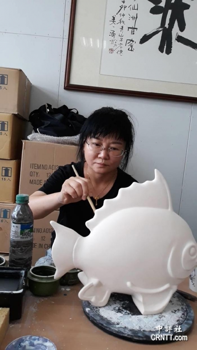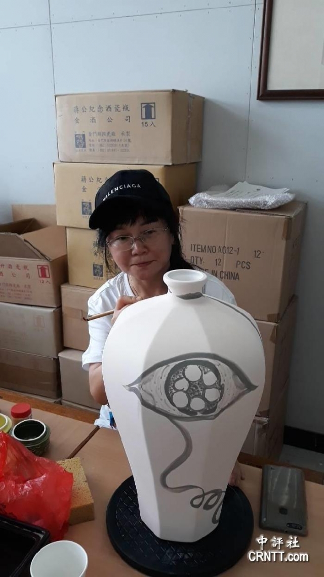余鍵也曾多次參與臺灣藝術研究院的駐村創(chuàng)作,在金門彩繪出獨一無二的金酒瓷瓶,她在瓷瓶上的創(chuàng)作以裝飾性的線條畫出花、魚、身體和水等女性主義元素,溫柔婉約,傳達出彩墨畫中樸素、淡雅的本質(zhì)。