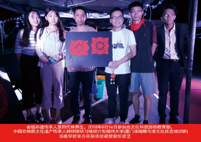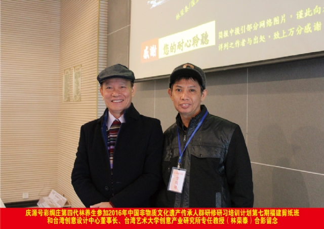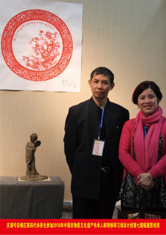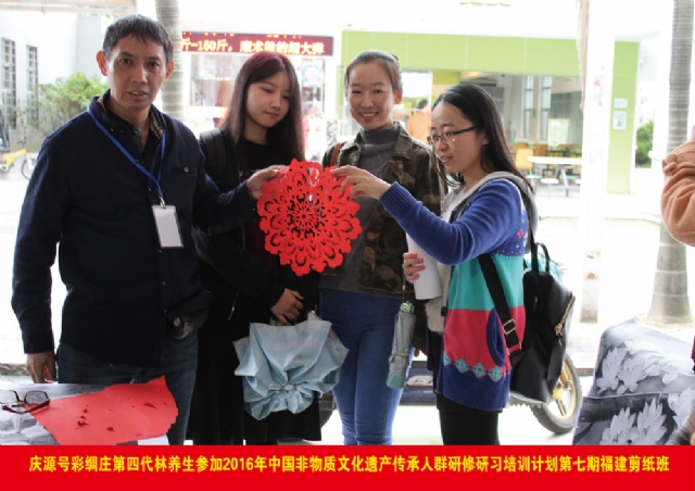 慶源號(hào)彩綢莊第四代林養(yǎng)生和林養(yǎng)華參加2016年中國(guó)非物質(zhì)文化遺產(chǎn)傳承人群研修研習(xí)培訓(xùn)計(jì)劃第七期福建剪紙班