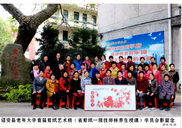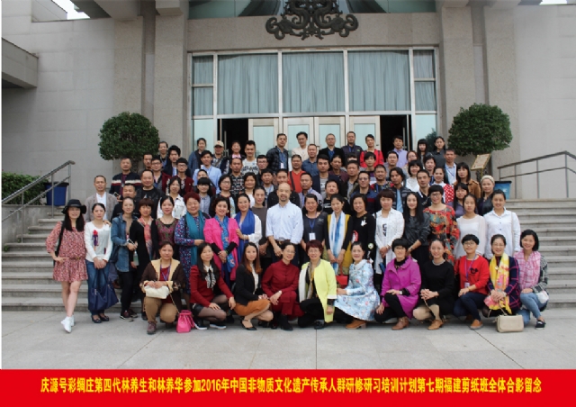 慶源號(hào)彩綢莊第四代林養(yǎng)生和林養(yǎng)華參加2016年中國(guó)非物質(zhì)文化遺產(chǎn)傳承人群研修研習(xí)培訓(xùn)計(jì)劃第七期福建剪紙班全體合影留念