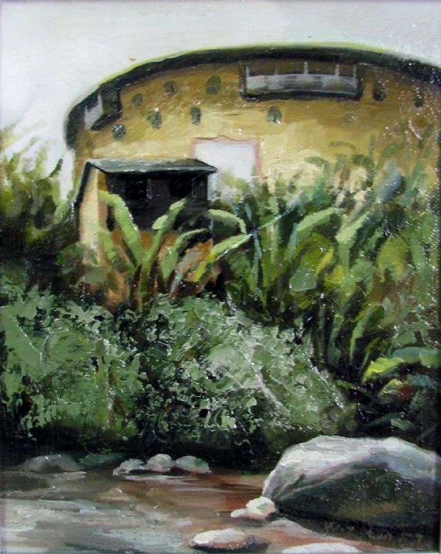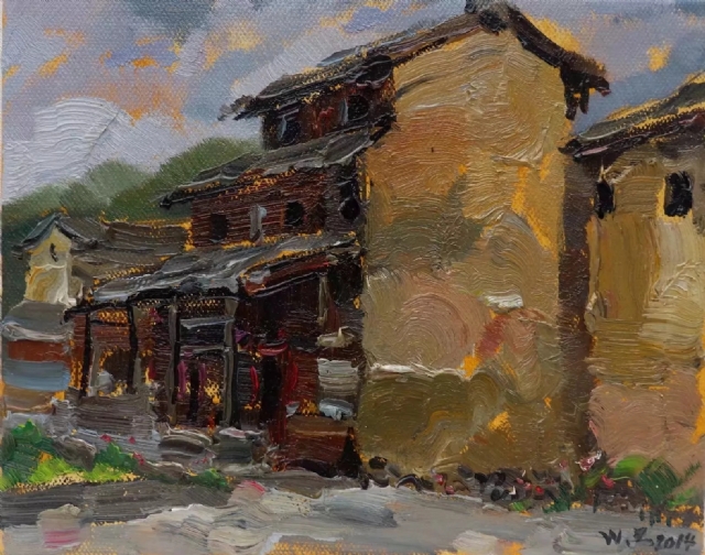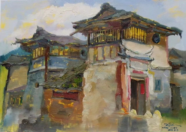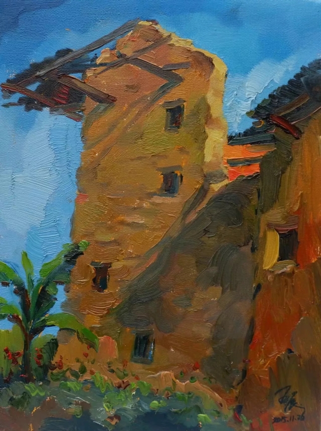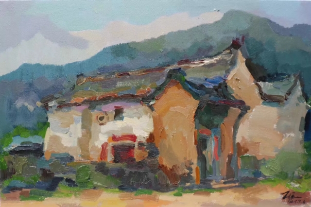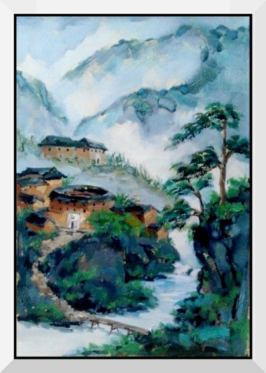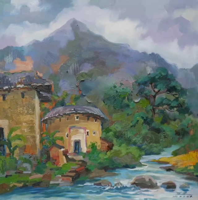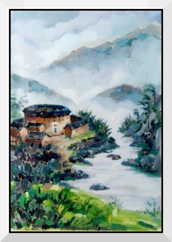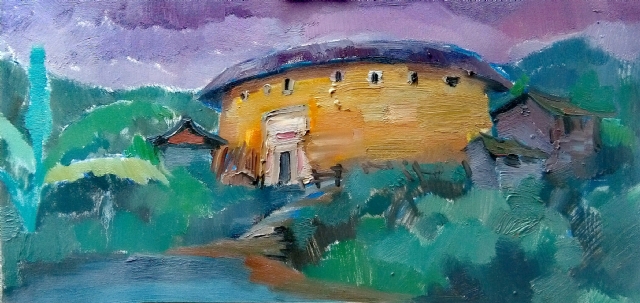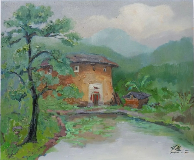 看了王振的土樓繪畫作品,感到自然樸實,真實地再現(xiàn)了客家土樓這一世界奇葩的原貌。